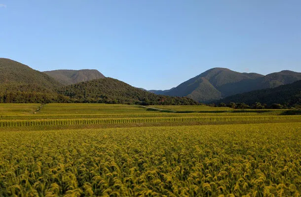 山下農園があるのは、四季のうつろいが豊かに感じられる中山間地域。海からのミネラルたっぷりの潮風と、山からの澄んだ水を使い、昼と夜の寒暖差が大きいこの地域は、お米の甘みと旨味を引き出してくれる絶好の環境です。きれいな空気、清らかな水、肥沃な土、潮風、動物、昆虫、植物と共に共存して育った深みのあるお米を、全国の食卓へお届けします。